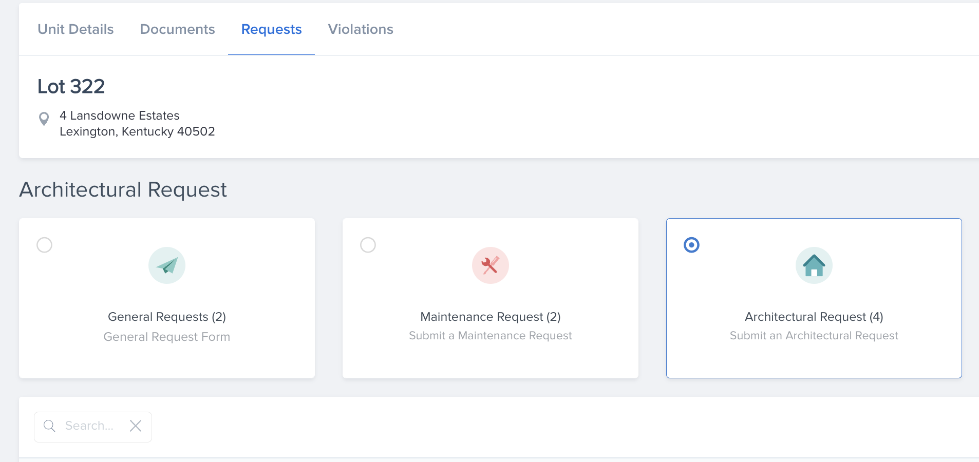 Select the Architectural Request box (depending on your specific community it might be the only request option).